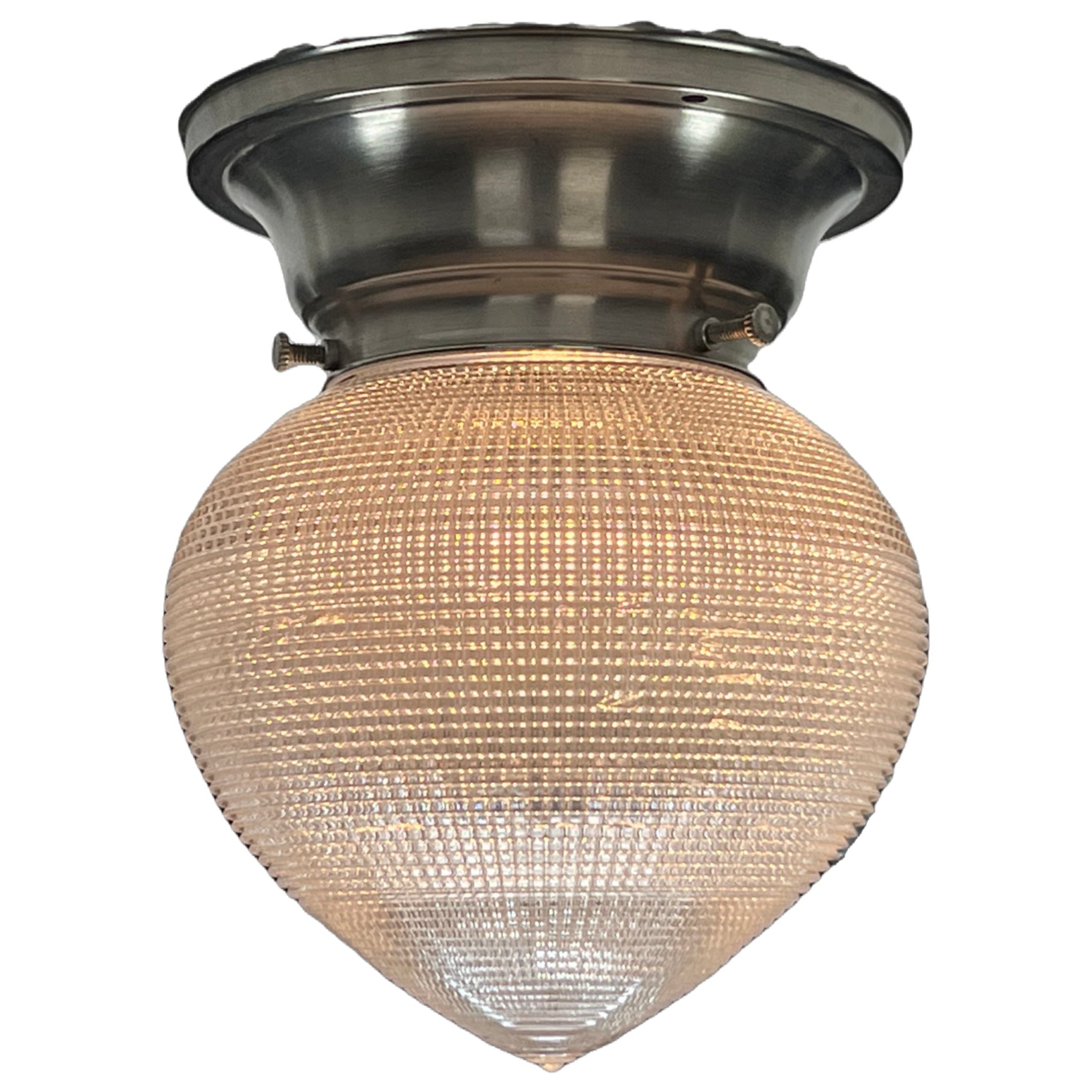 Clear Bullet Holophane on Satin Nickel Fitter circa 1900 #2412
