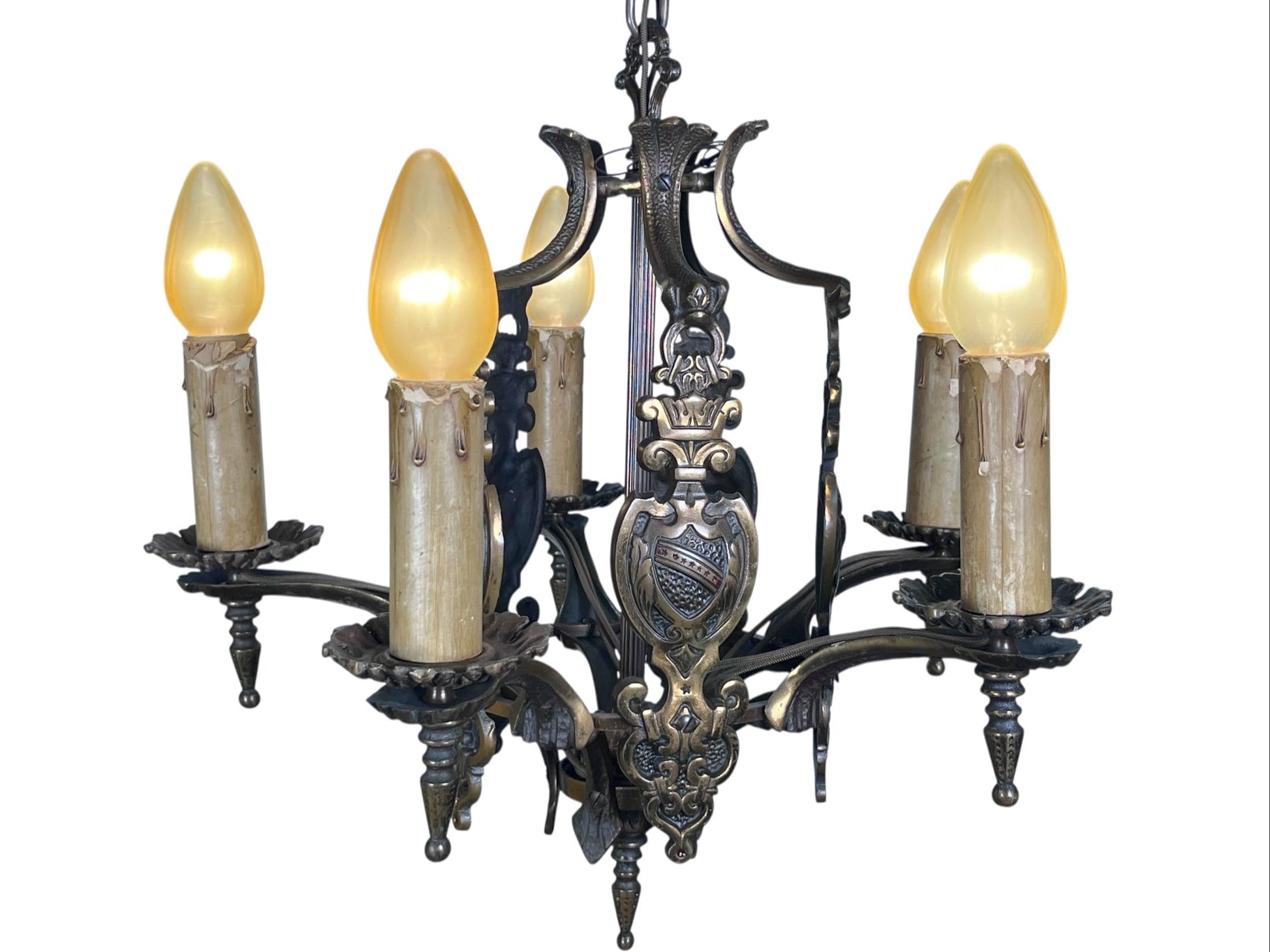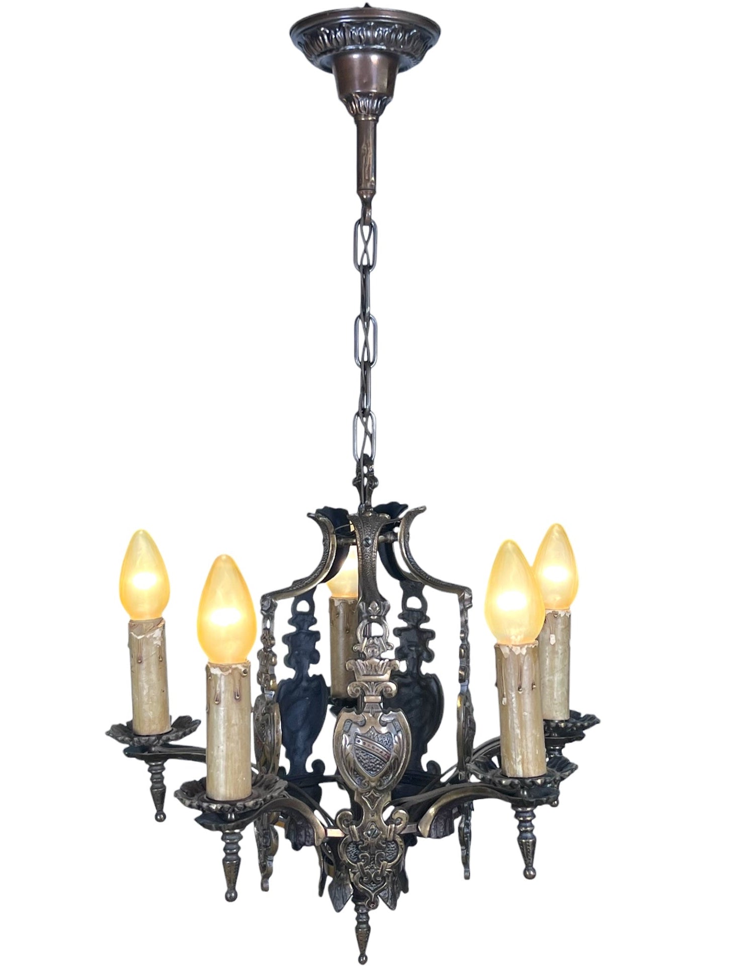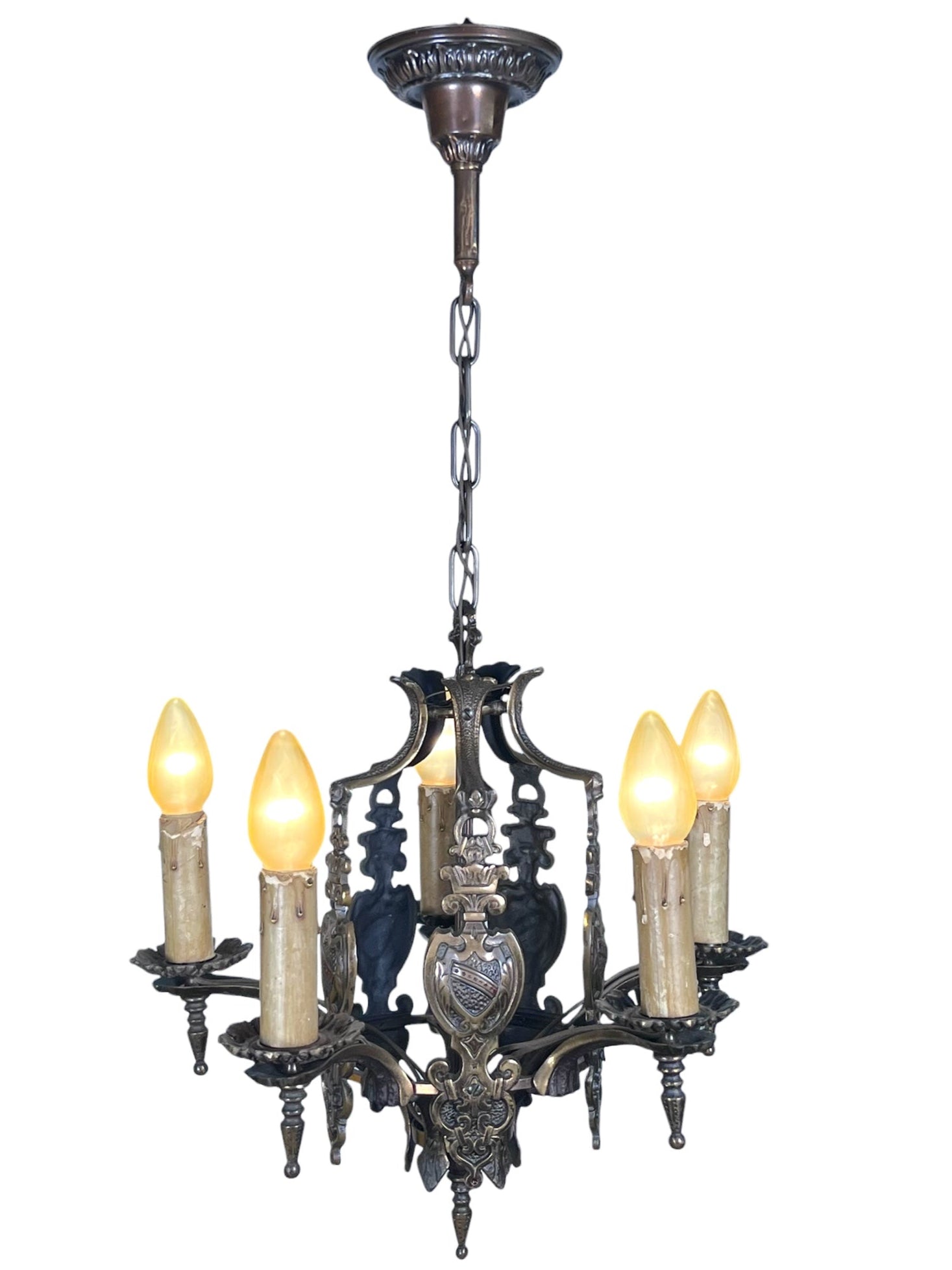Dark Cast Bronze 5 Light with Original Finish and Candlecovers #2534