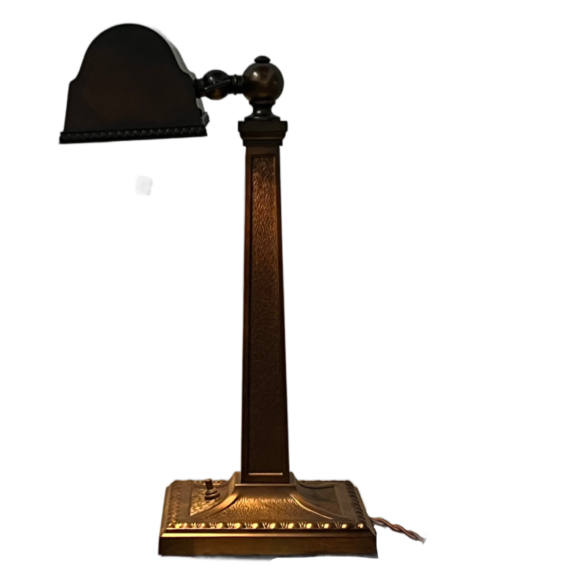Great example of a Banker's Lamp with original finish. New lacquer over natural patina. Especially nice small details make this stand out from other banker's lamps. New cord.