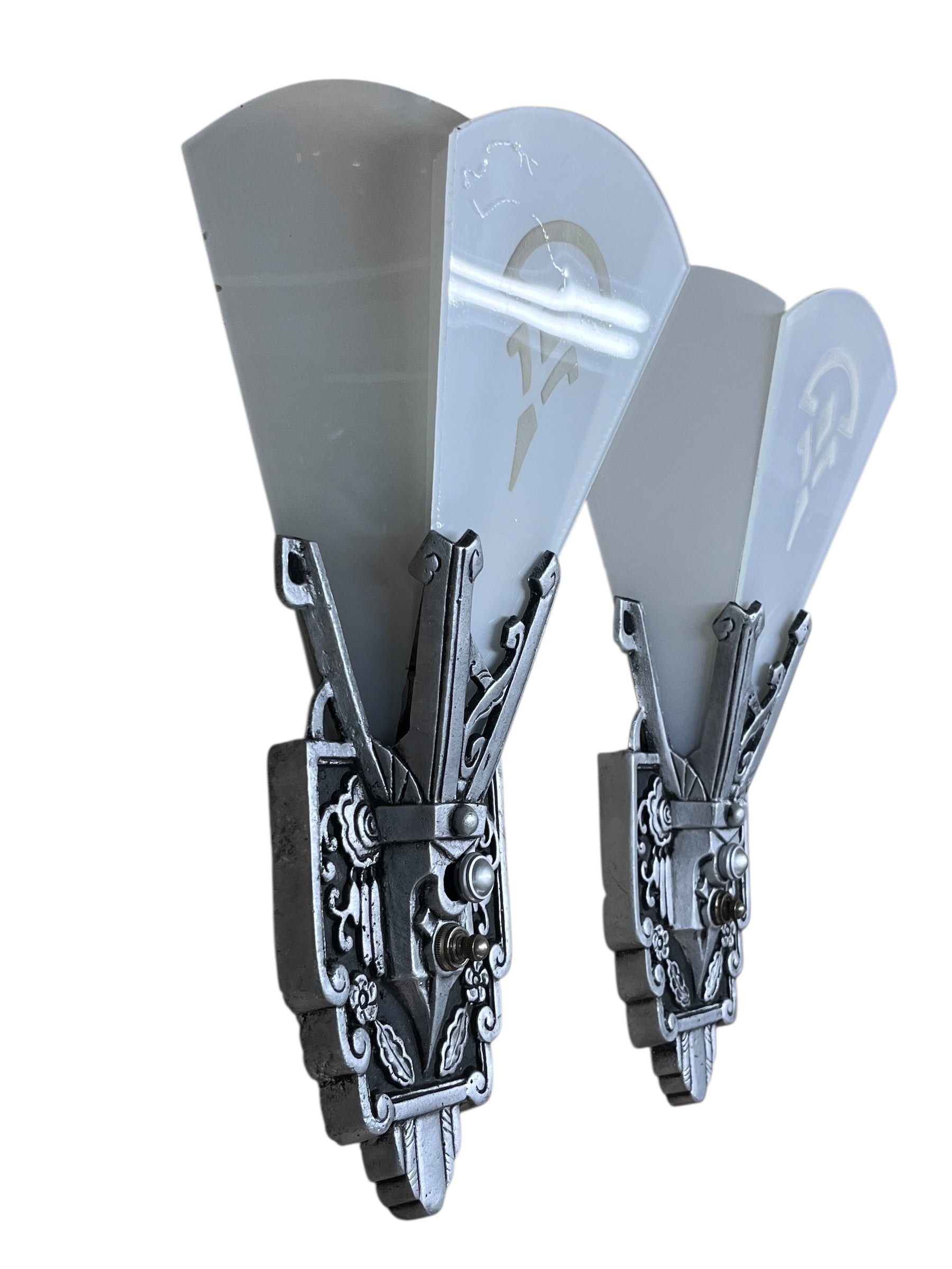 One Pair (of 2) Art Deco Flat Glass Panel Wall Silver and Black Sconces by Lincoln #2581