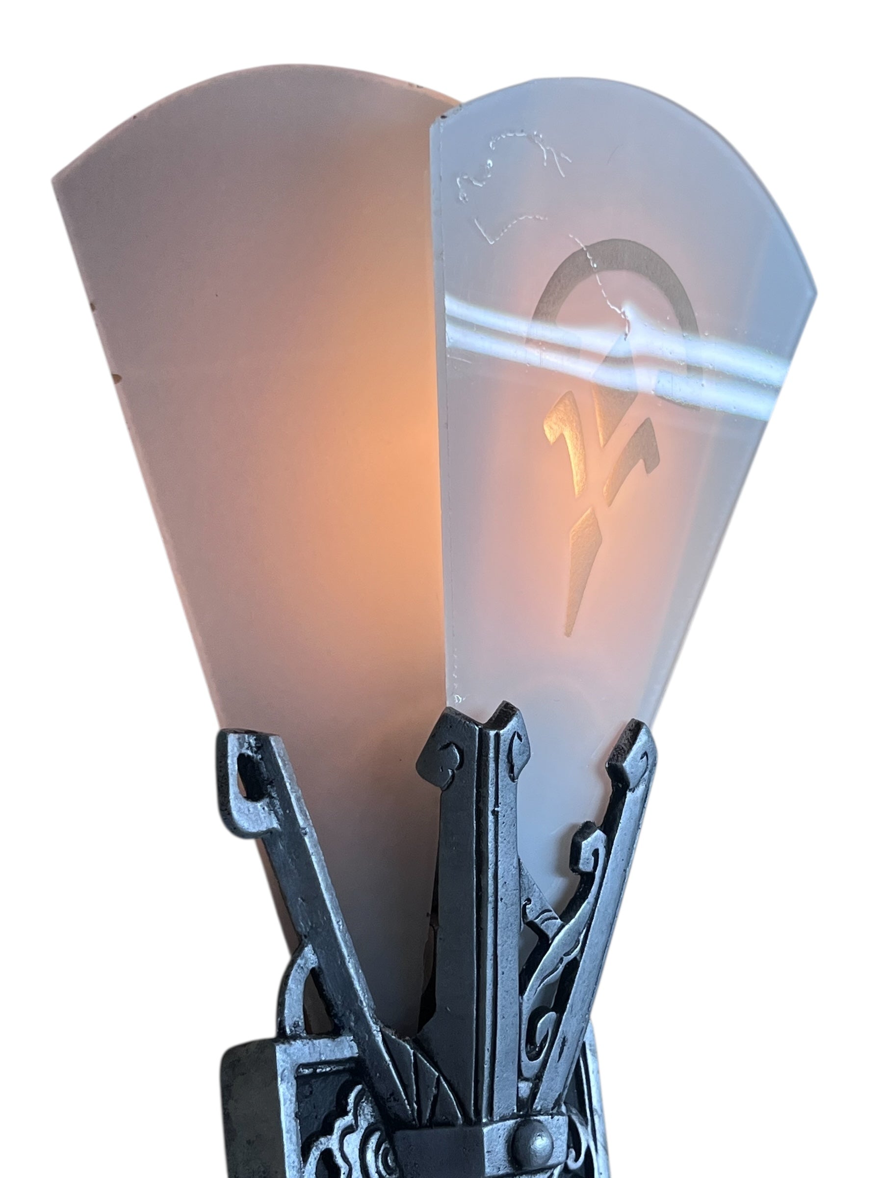 One Pair (of 2) Art Deco Flat Glass Panel Wall Silver and Black Sconces by Lincoln #2582