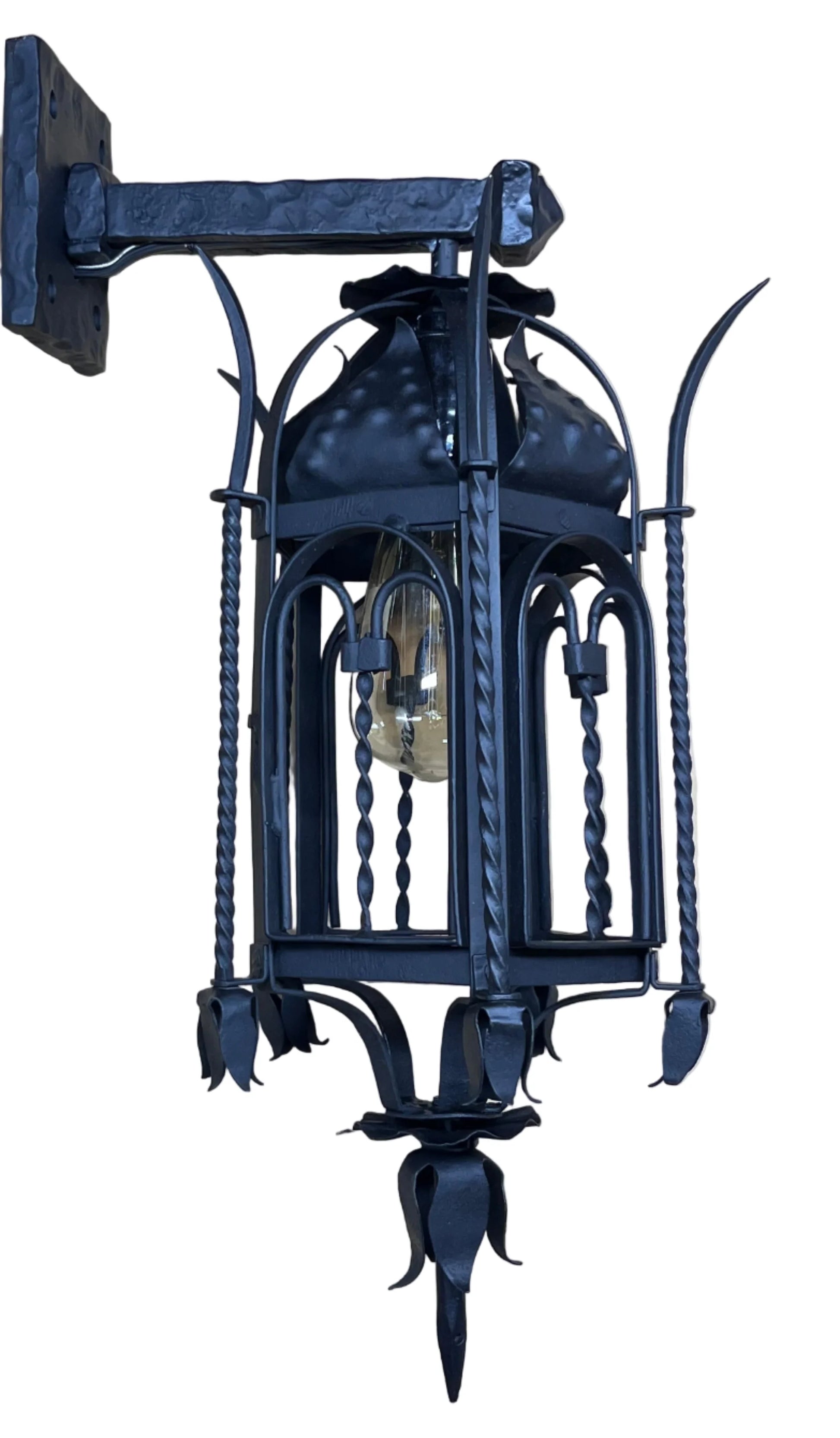 Nice sconce with style for a Spanish or Gothic setting. We removed at least three thick layers of paint in different colors and replaced it with new black paint and a new socket. This light screws to wall with provided screws. Not recommended in areas that get a lot of direct cold weather, as the bulb is exposed without glass or a roof.