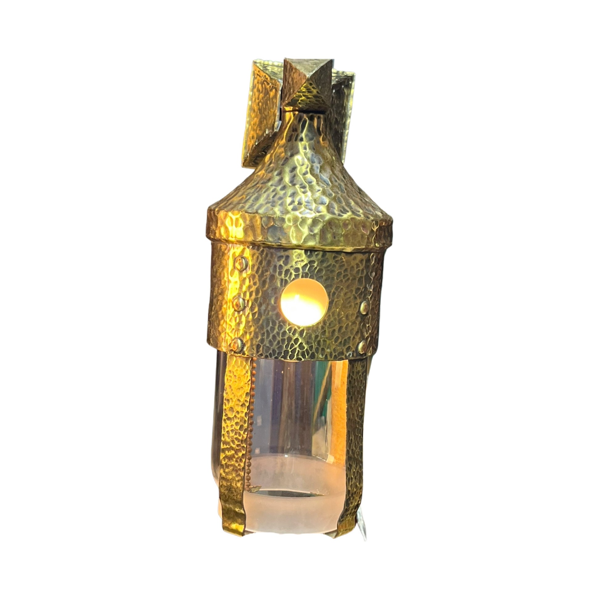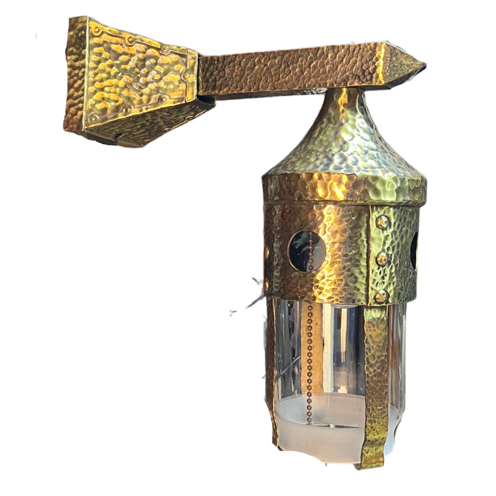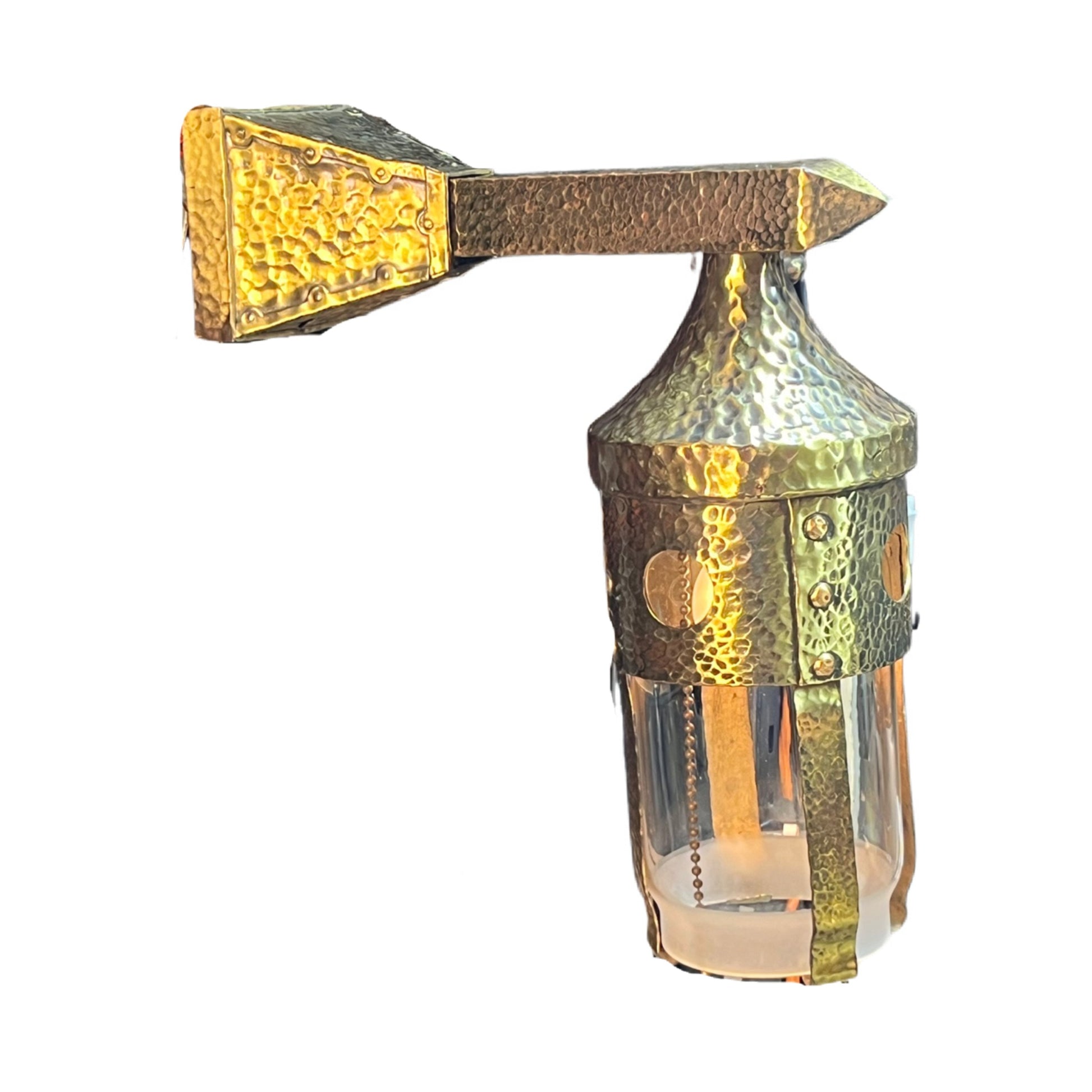 Hammered Brass Arts and Crafts Sconce with Clear Glass Shade #2352
