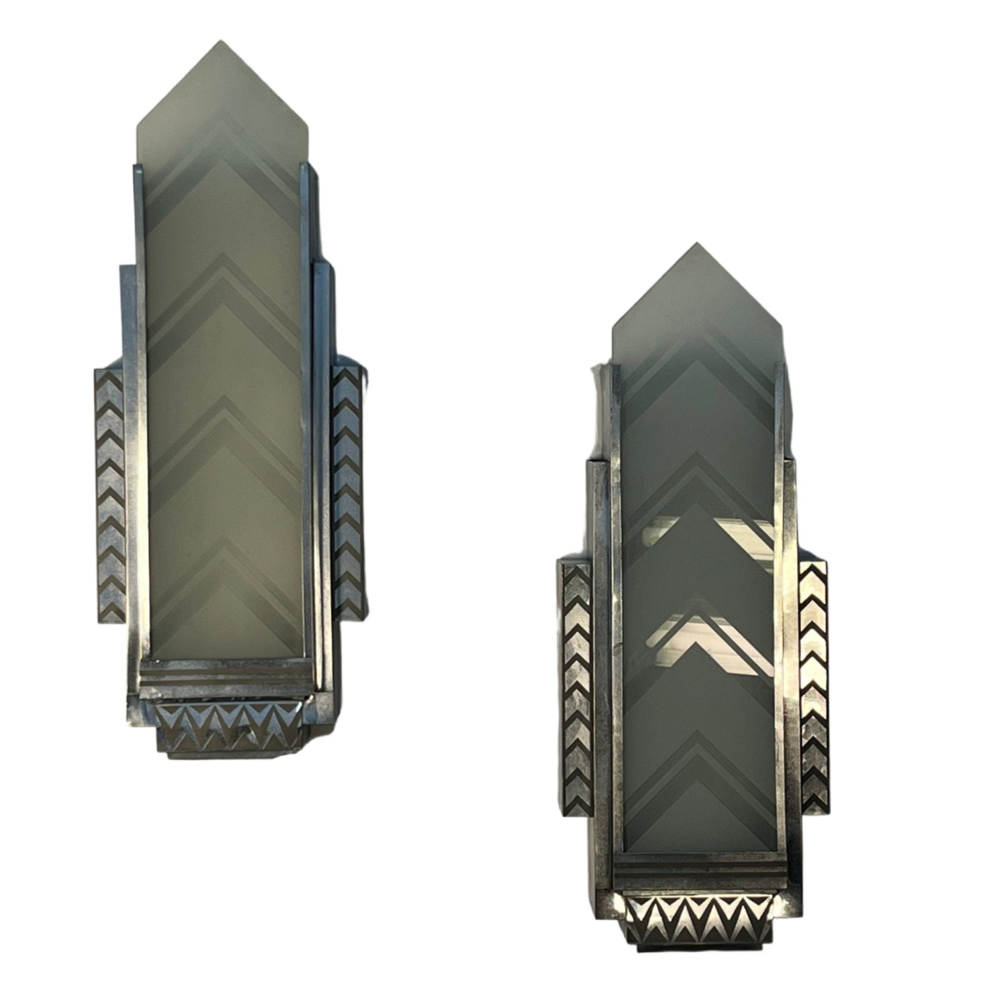 HUGE Art Deco Movie Theatre Wall Sconces with Original Chrome #2335