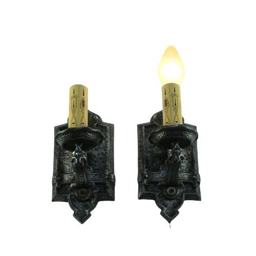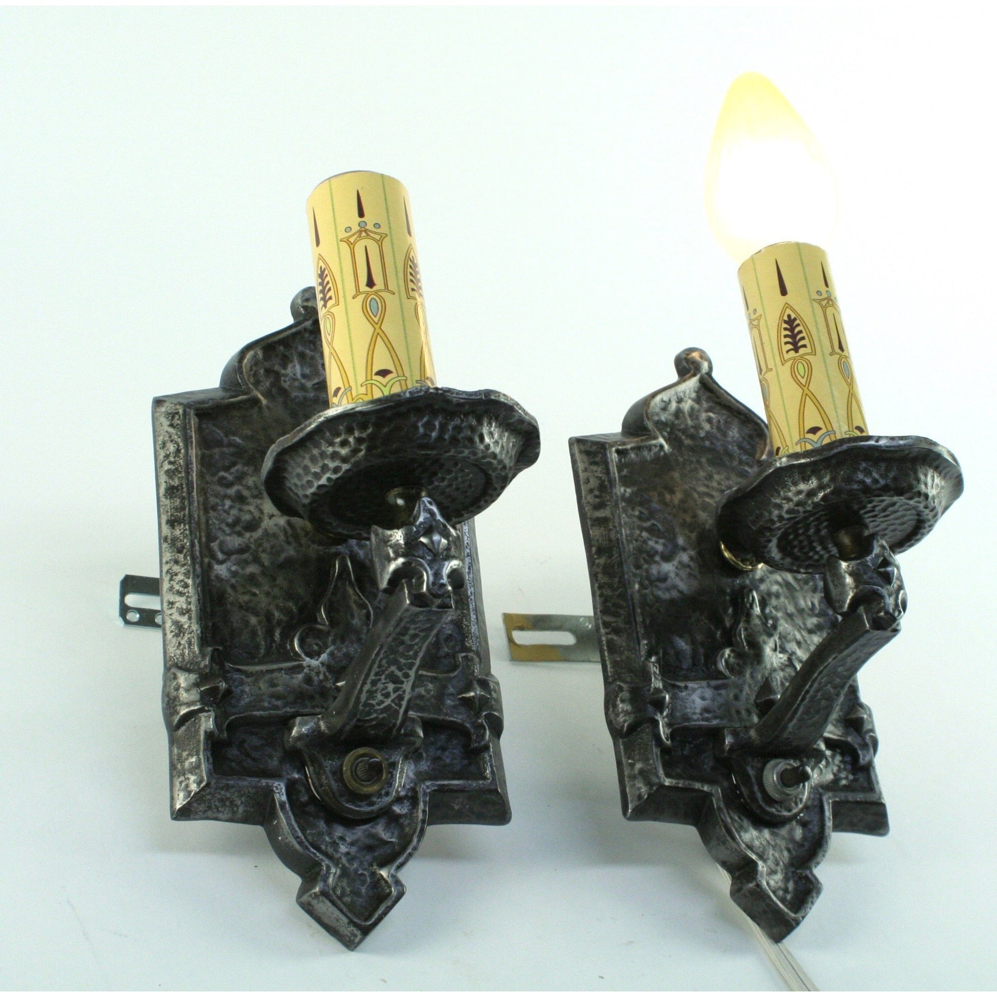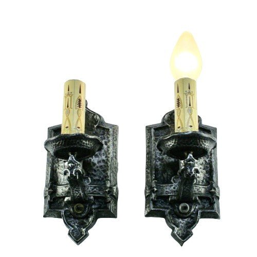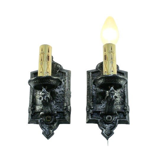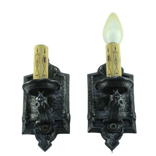 #2060 Pair Hammered Spanish Revival Candle Sconces