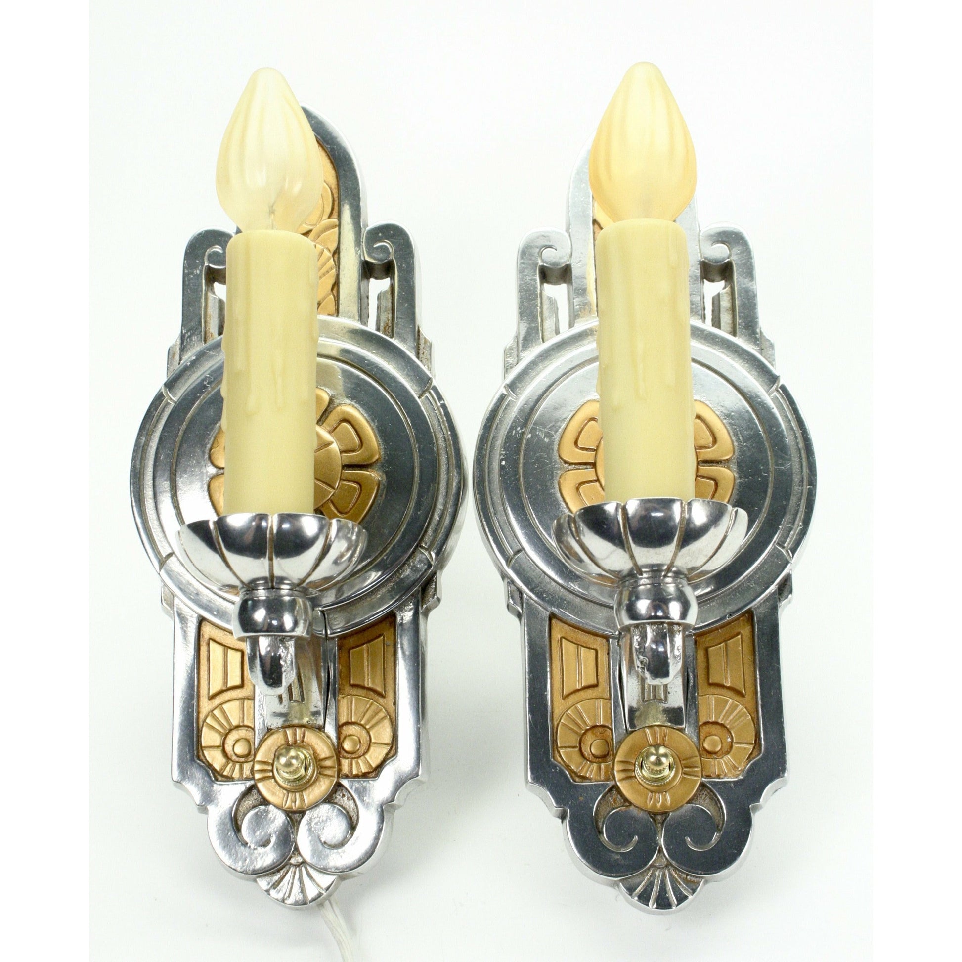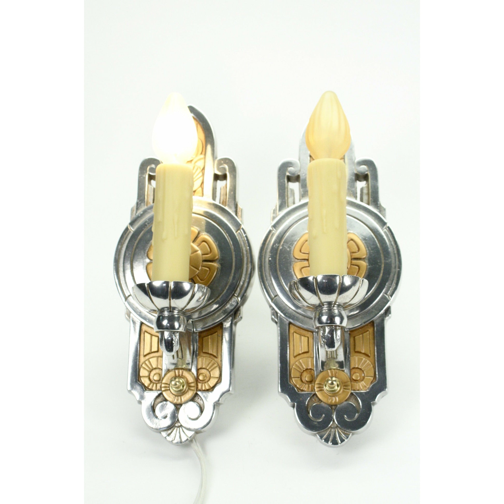 PAIR Polished Lincoln Art Deco Sconces #2106