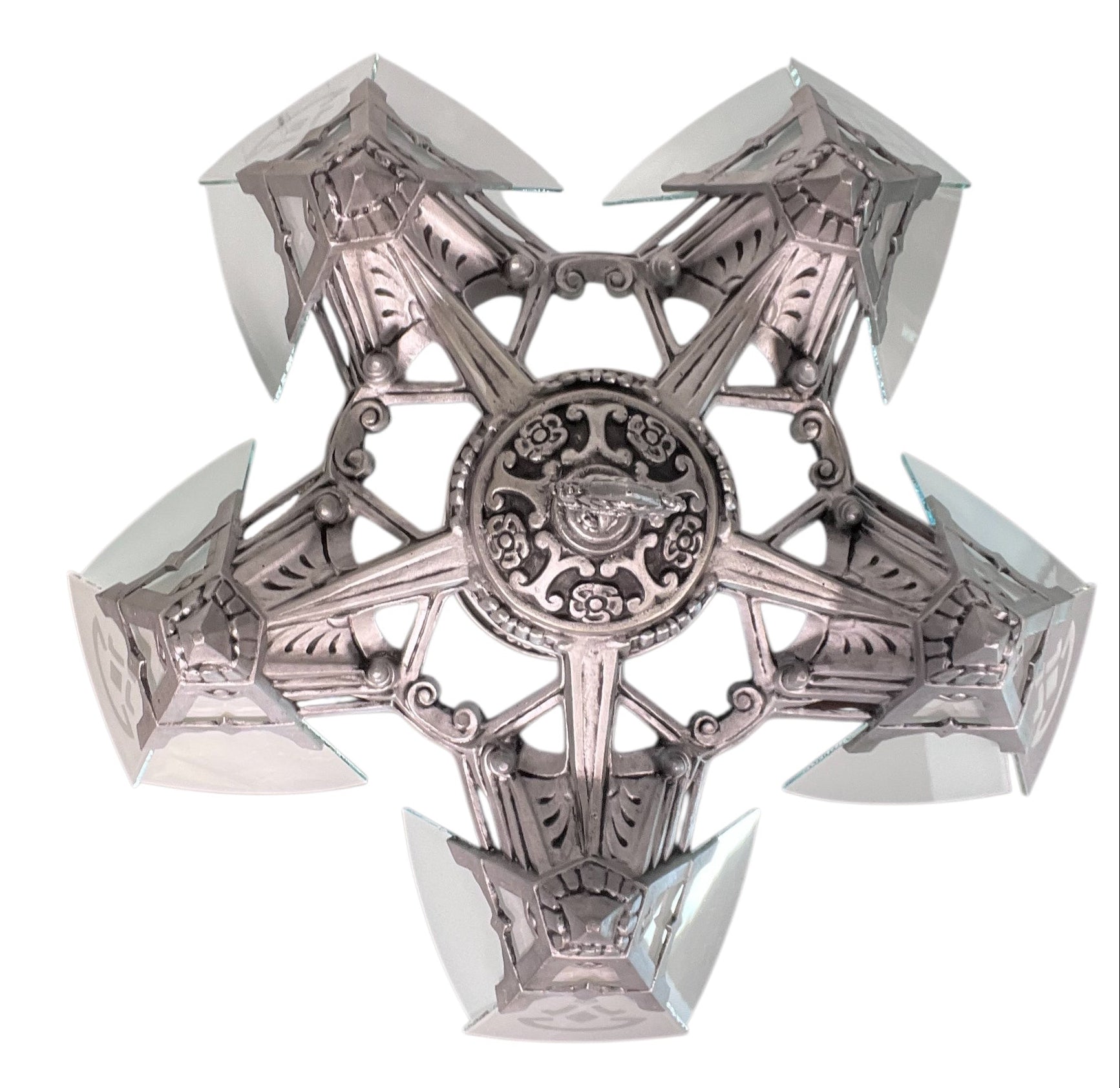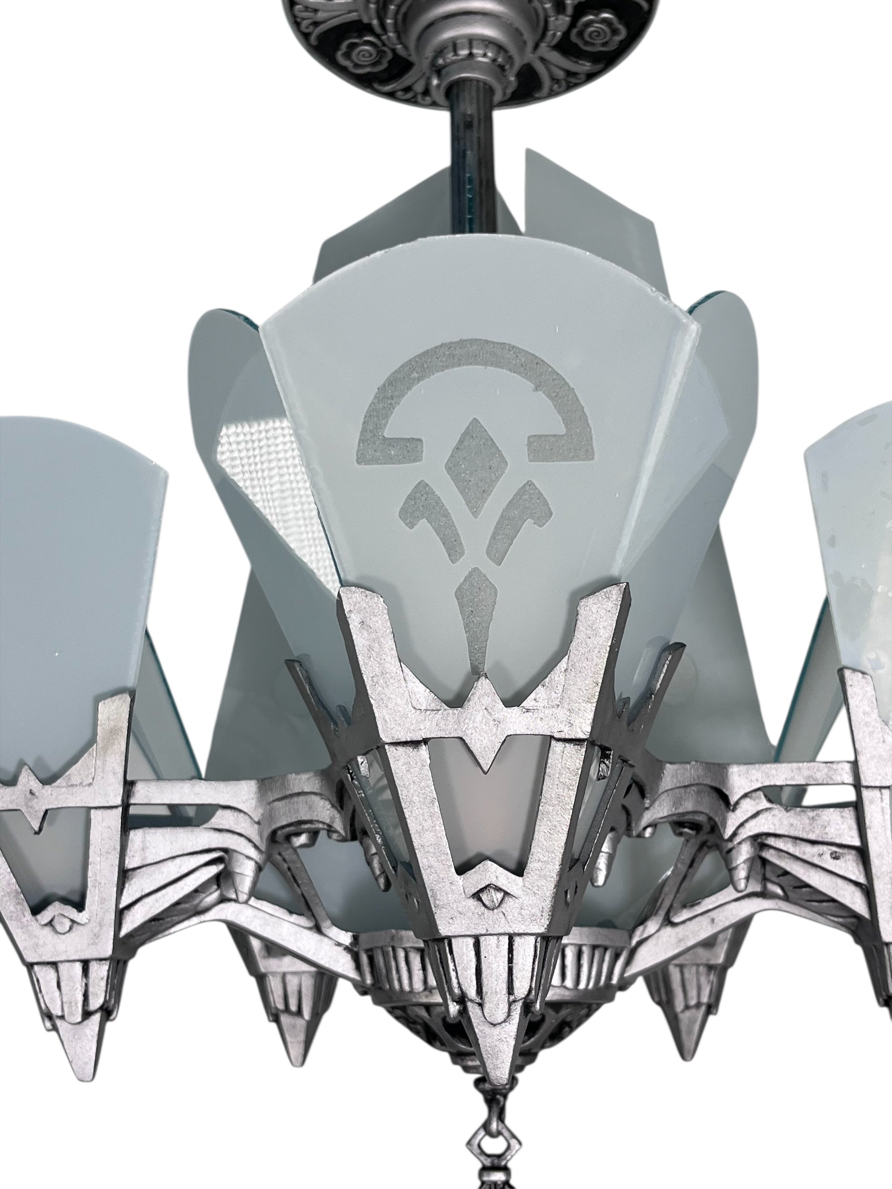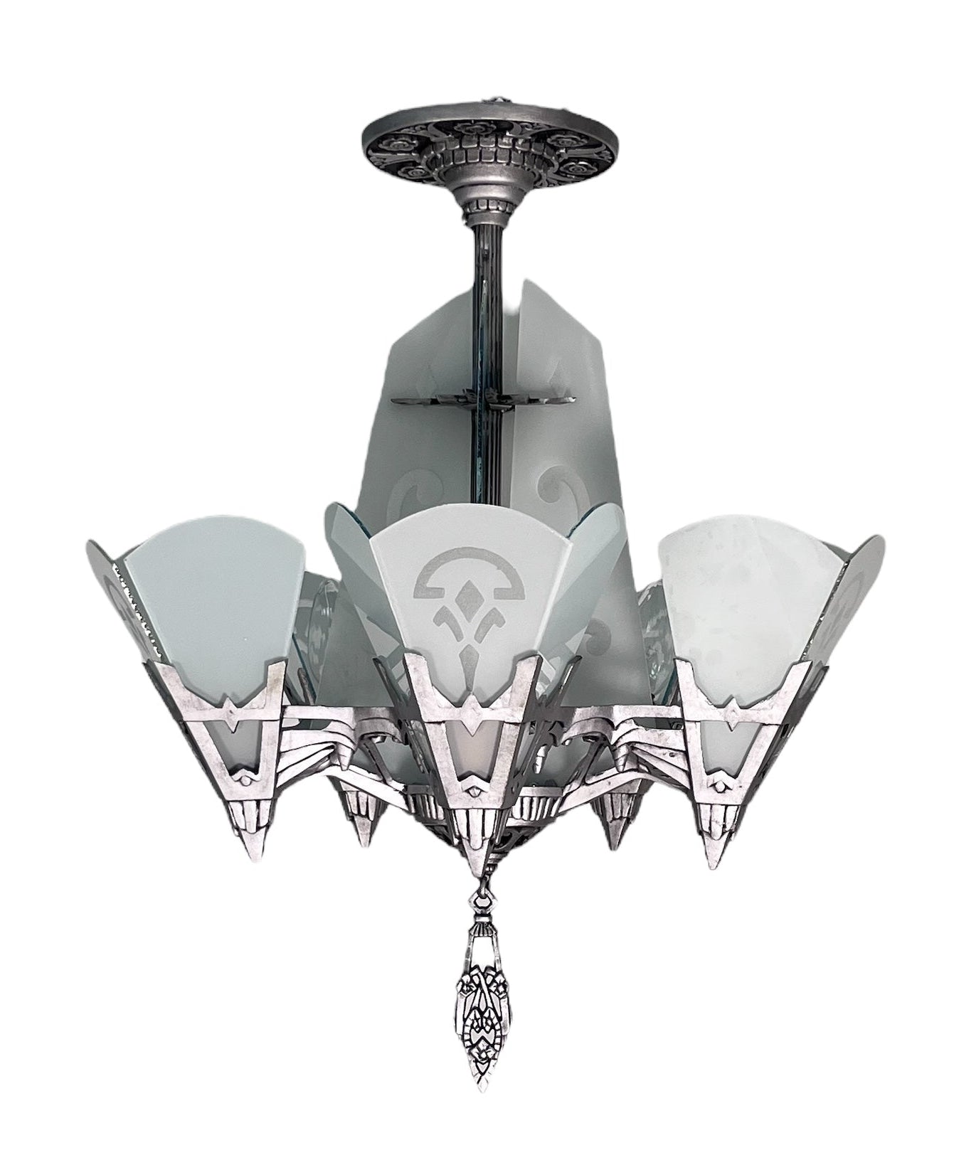 One of TWO Art Deco Chandelier with Flat Panels of Glass for Short Ceilings #2579
