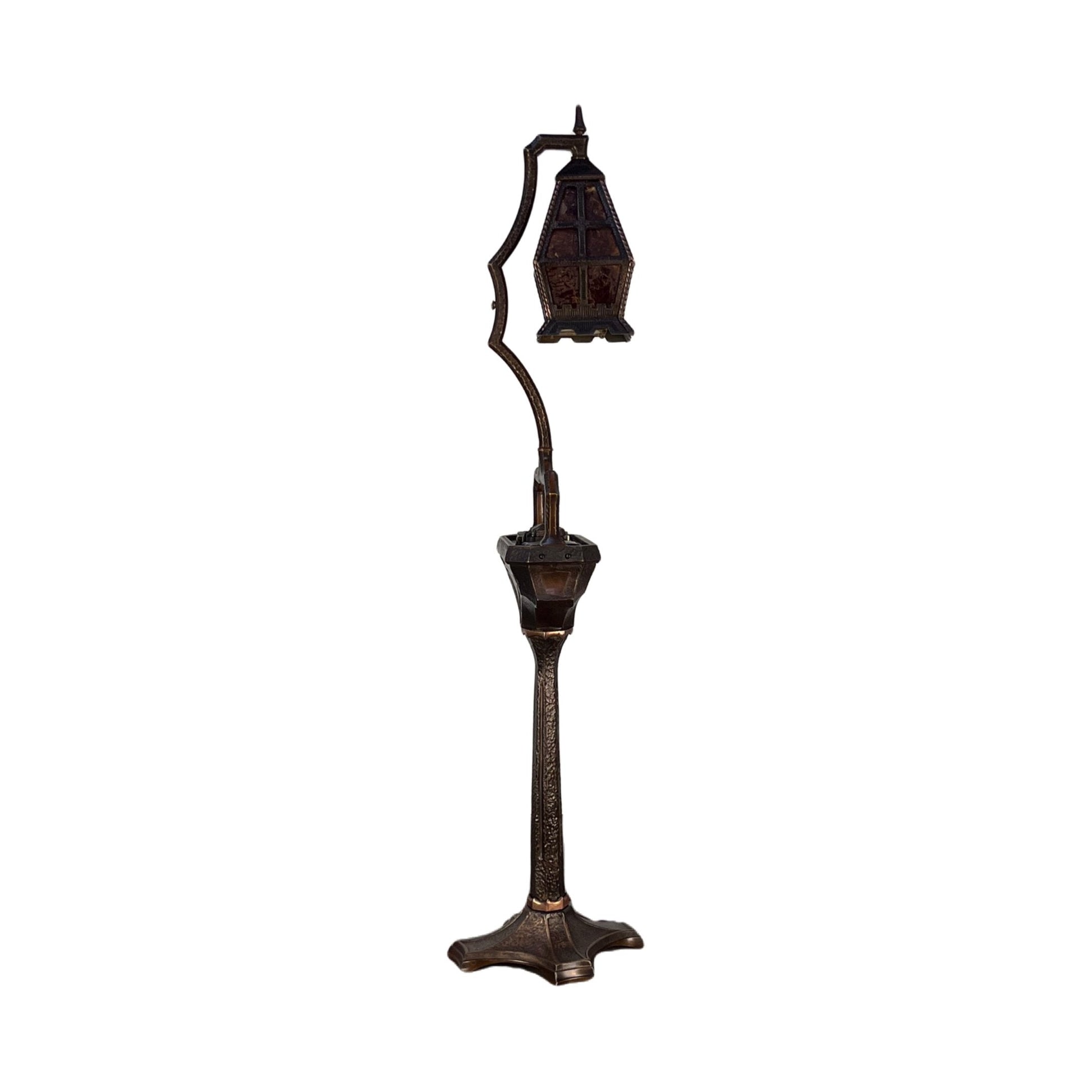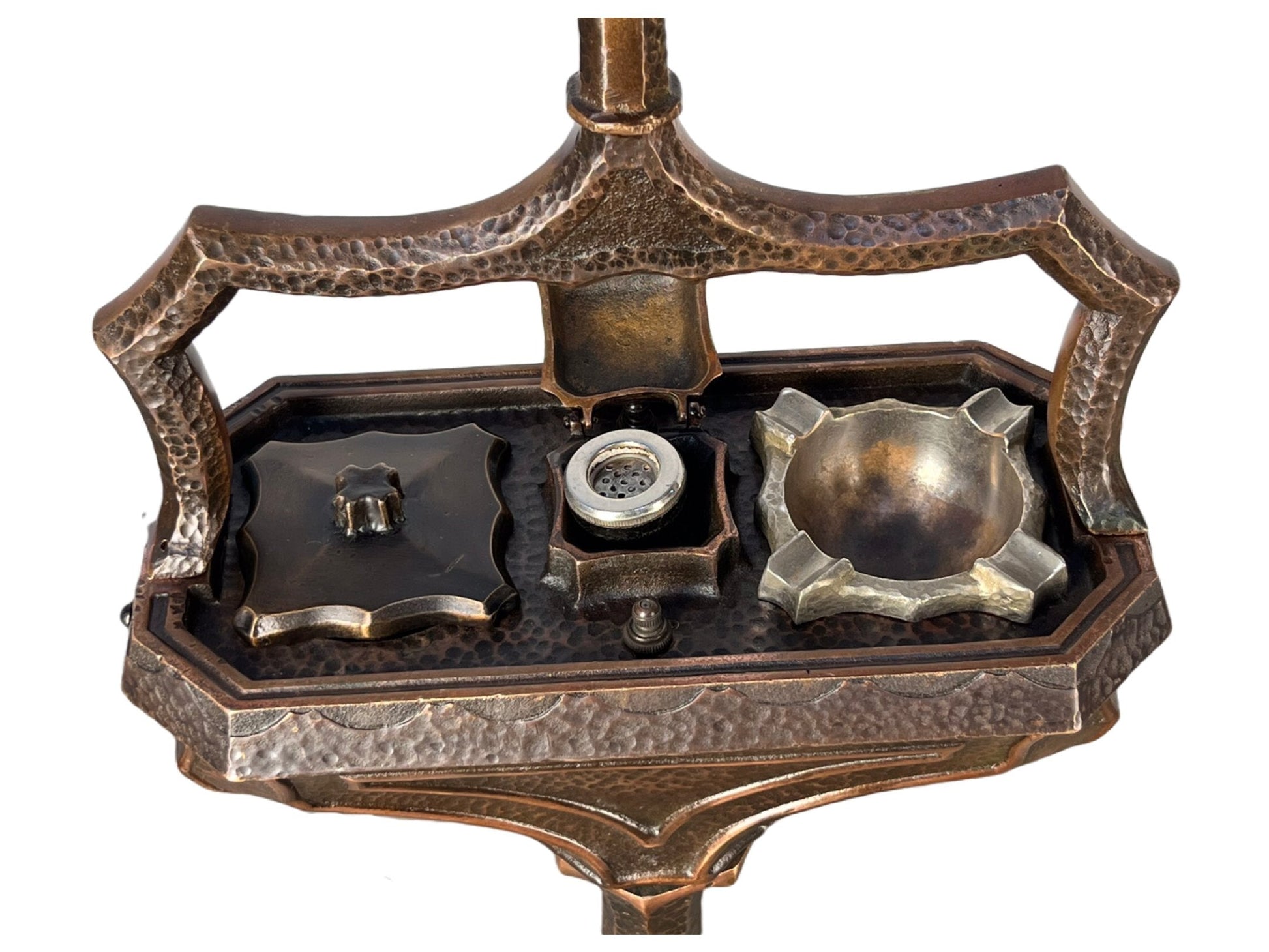 Stunning Hammered Arts and Crafts Floor Lamp in Cast Bronze with Smoking Accessories #2367